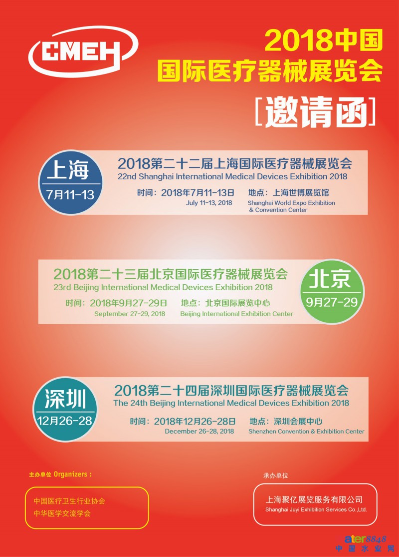 第二十二屆中國(上海)國際醫(yī)療器械展覽會(huì)將于2018年7月11日—13日將在上海世博展覽館隆重舉行,作為最具規(guī)模及影響力的醫(yī)療器械領(lǐng)域盛會(huì) ,CMEH將整合資源為國內(nèi)外醫(yī)療器械廠商提供一個(gè)既能做出口也能做國內(nèi)貿(mào)易的平臺(tái)展會(huì),讓國內(nèi)外展商更能有效開拓國際和國內(nèi)市場。CMEH將在有7千萬人次參觀過的上海世博展覽館展出,組織單位本著為企業(yè)開拓市場、增進(jìn)交流、擴(kuò)大銷售服務(wù)的宗旨,推動(dòng)醫(yī)療器械行業(yè)市場的繁榮。相信本次展會(huì)定為你帶來無限商機(jī),望各醫(yī)療器械相關(guān)單位積極報(bào)名參與!