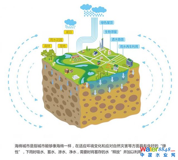 “海綿城市”,即比喻城市像海綿一樣,在適應環(huán)境變化和應對自然災害等方面具有良好的“彈性”。下雨時吸水、蓄水、滲水、凈水,需要時將蓄存的水“釋放”并加以利用,從而讓水在城市中的遷移活動更加“自然”。