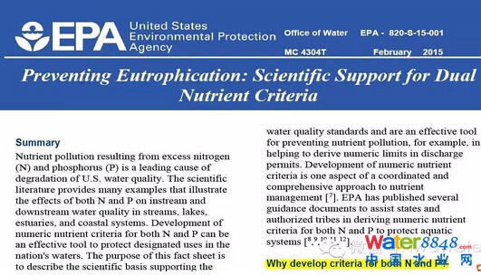 美國(guó)EPA2015年2月發(fā)布了《Preventing Eutrophication: Scientific Support for Dual NutrientCriteria》一文,強(qiáng)調(diào)了對(duì)于防控富營(yíng)養(yǎng)化:營(yíng)養(yǎng)鹽采用N、P雙指標(biāo)控制的必要性及科學(xué)依據(jù)。這與近兩年的國(guó)際上的研究結(jié)果基本一致。強(qiáng)調(diào)了“Controlling only P may not effectively prevent the occurrence ofharmful algal blooms in freshwaters.”(只進(jìn)行P的控制可能無法有效預(yù)防淡水水體有害藻類的發(fā)生),因?yàn)閷?shí)踐證明,在富N/貧P環(huán)境下,一樣會(huì)發(fā)生大規(guī)模的藻類爆發(fā)。