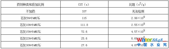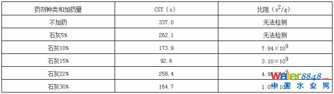 表3石灰單獨調(diào)理對污泥脫水性能的影響