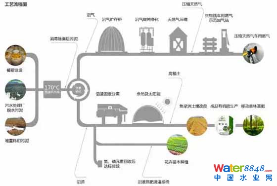 2011年,湖北襄陽(yáng)市為了解決污泥造成的惡臭和水污染問(wèn)題,保障南水北調(diào)工程水源安全,選擇了“高溫水解+高濃度厭氧消化+甲烷捕獲利用”技術(shù)路線對(duì)污泥和餐廚垃圾進(jìn)行協(xié)同處理,經(jīng)過(guò)兩年多的嘗試,取得了很好的效果。不僅實(shí)現(xiàn)了襄陽(yáng)市每天新增污泥的全部處置,還逐步消納了堆置的陳舊污泥,實(shí)現(xiàn)了“污泥全消納、能量全平衡、資源全回收、過(guò)程全綠色、費(fèi)用可接受”的多效目標(biāo),探索出了一條有效的污泥資源化途徑。