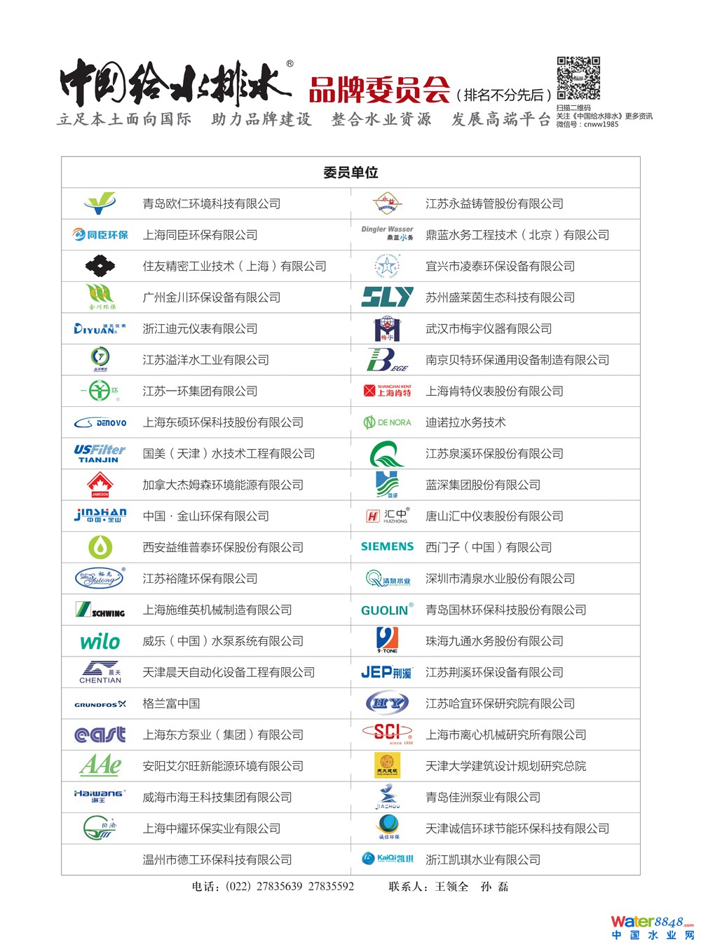 聯(lián)系人: 王領(lǐng)全 孫磊 聯(lián)系電話:022-27835639 27835592 13752275003 E-mail: cnwater@vip.163.com wanglingquan88@163.com |
