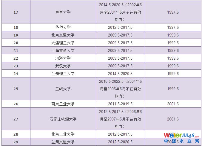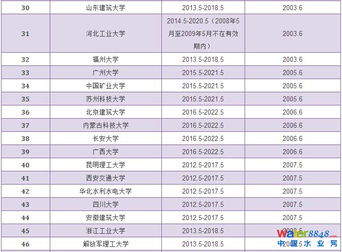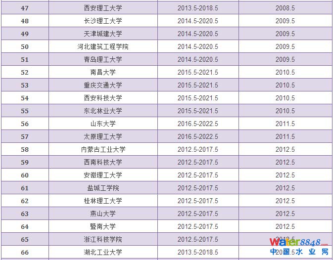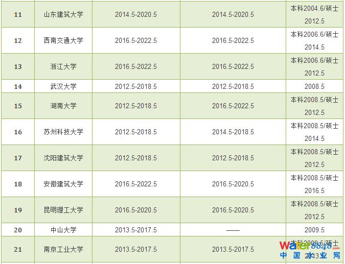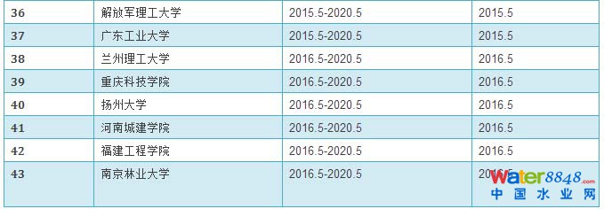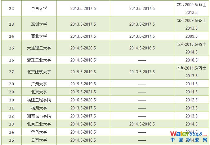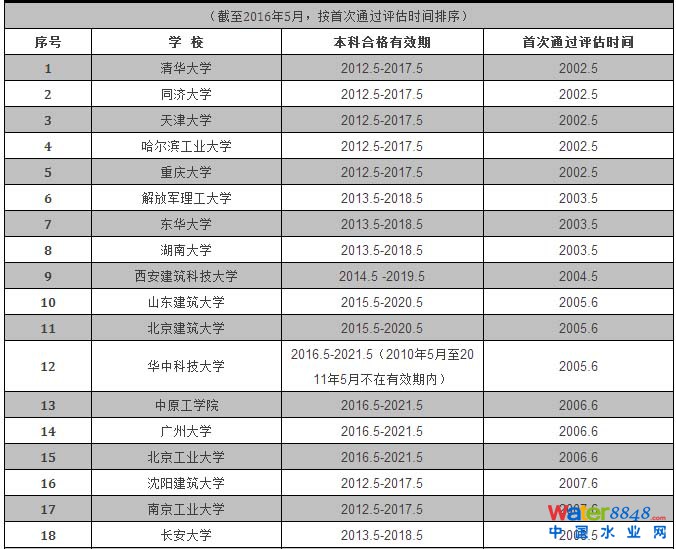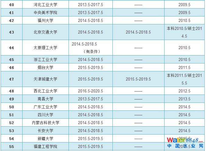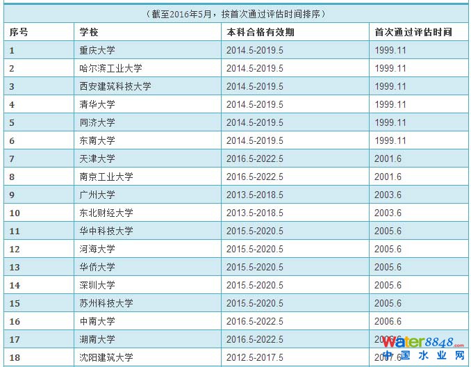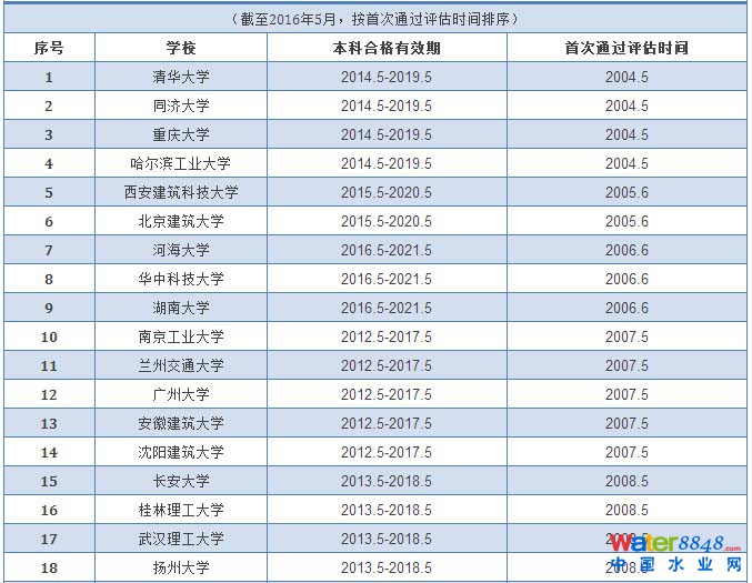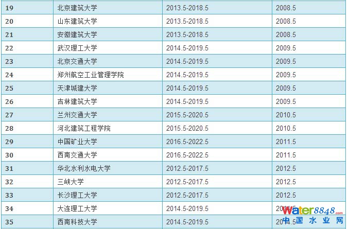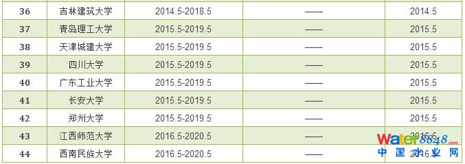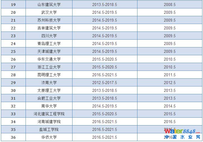 給排水科學(xué)與工程專業(yè)評估通過學(xué)校和有效期情況統(tǒng)計表