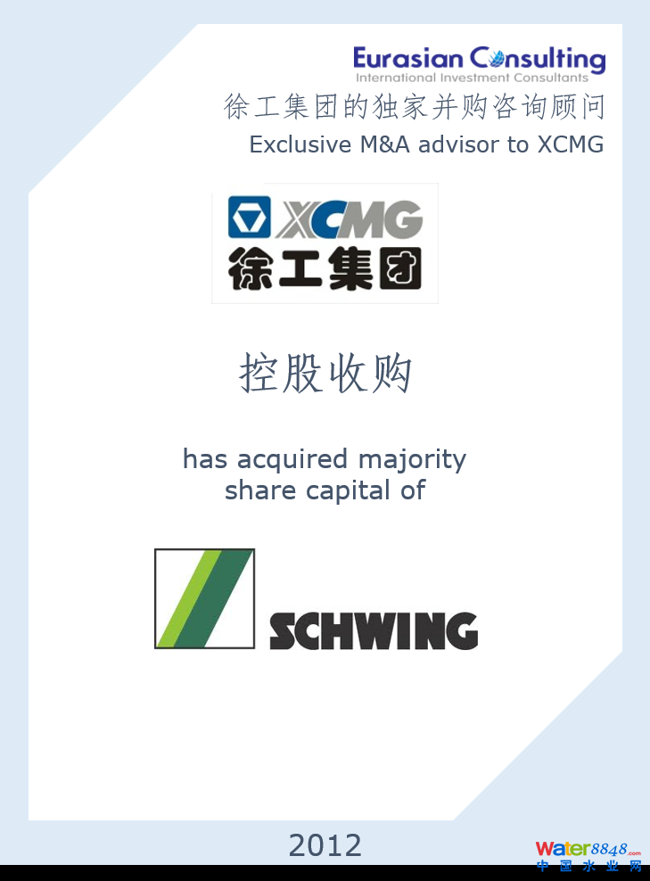 • 標的公司:全球領(lǐng)先的混凝土成套設(shè)備生產(chǎn)商德國施維英集團有限公司,年銷售額:約5億歐元(2010)