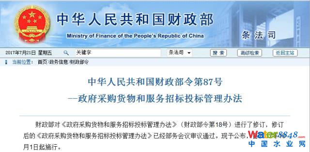 導讀:《政府采購貨物和服務招標投標管理辦法》(財政部令第87號,以下簡稱“87號令”)發(fā)布,自2017年10月1日起施行。