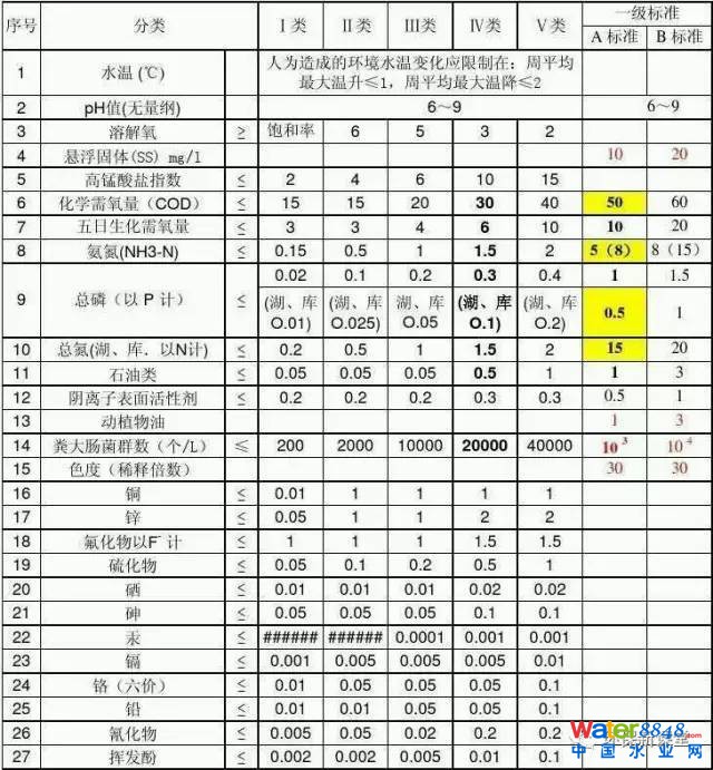 污水三級(jí)排放標(biāo)準(zhǔn)對(duì)比圖