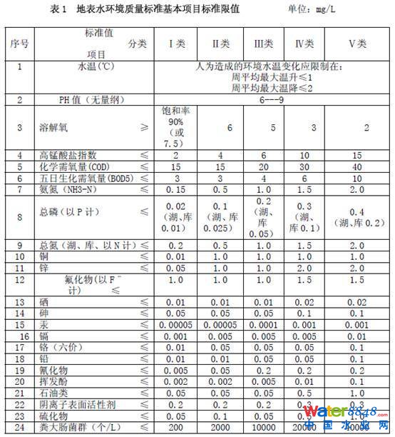 附表1:地表水環(huán)境質(zhì)量標(biāo)準(zhǔn)