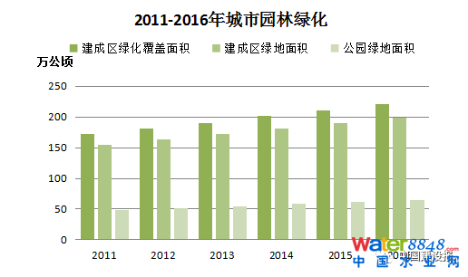 2016年年末,城市建成區(qū)綠化覆蓋面積220.4萬公頃,比上年增長4.7%,建成區(qū)綠化覆蓋率40.30%,比上年增加0.18個(gè)百分點(diǎn);建成區(qū)綠地面積199.3萬公頃,比上年增長4.4%,建成區(qū)綠地率36.43%,比上年增加0.07個(gè)百分點(diǎn);公園綠地面積65.4萬公頃,比上年增長6.4%,人均公園綠地面積13.70平方米,比上年增加0.35平方米。