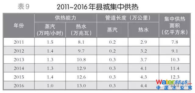 2016年年末,供熱能力(蒸汽)1.0萬噸/小時(shí),比上年減少25.4%,供熱能力(熱水)13.0萬兆瓦,比上年增長3.7%,供熱管道4.7萬公里,比上年增長1.4%,集中供熱面積13.1億平方米,比上年增長6.5%。(表9)