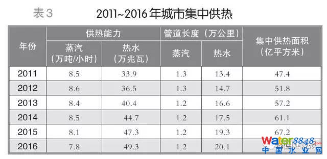 2016年年末,城市供熱能力(蒸汽)7.8萬噸/小時(shí),比上年減少3.0%,供熱能力(熱水)49.3萬兆瓦,比上年增長4.4%,供熱管道21.4萬公里,比上年增長4.5%,集中供熱面積73.9億平方米,比上年增長9.9%。(表3)