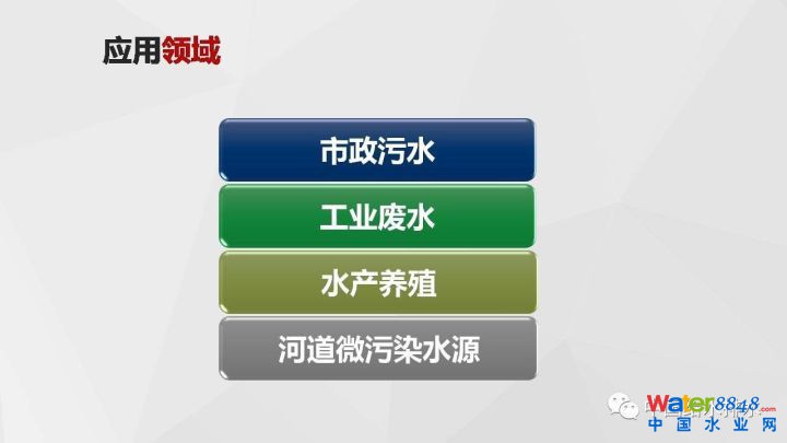 改性填料目前的應(yīng)用領(lǐng)域是市政污水,工業(yè)廢水,水產(chǎn)養(yǎng)殖和河道微污染水源治理等。
