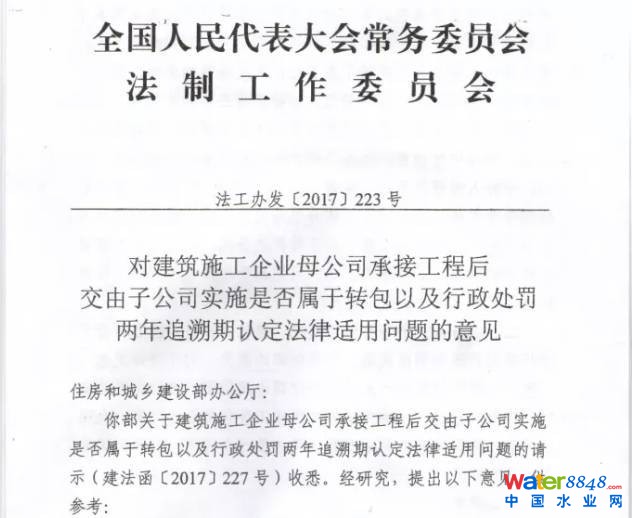 重磅!母公司中標(biāo)子公司施工屬于轉(zhuǎn)包?全國(guó)人大法工委復(fù)函住建部給出意見(jiàn)!