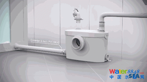 這個(gè)設(shè)備內(nèi)置有一個(gè)泵,所以把它安裝在馬桶后面,接上其他潔具(例馬桶、淋浴房、洗手臺(tái))的排污管,它就能把污水抽到排污的主管道 ▼