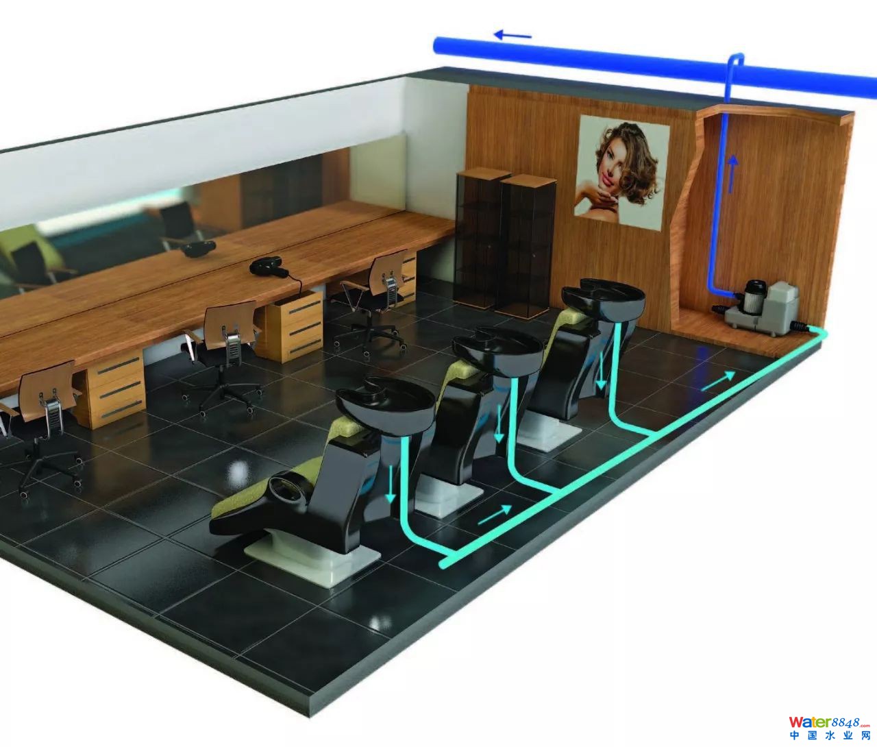 除了方便新增或移動(dòng)衛(wèi)生間以外,公司里的休息室也用得上,例如用升利達(dá)系列的一款設(shè)備:升利達(dá)泵,就可以增加一個(gè)水吧臺(tái) ▼