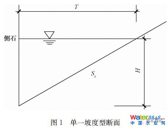 我國城市道路的路拱曲線一般采用直線型路拱,其邊溝形式如圖1所示,圖中T為路面積水寬度,Sx為路拱橫坡度,H為側(cè)石邊水深。