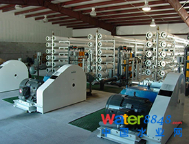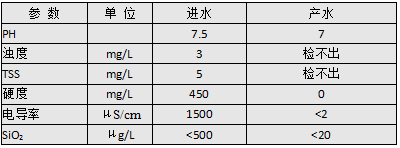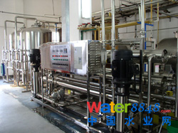 地表水—→提升泵—→混合反應沉淀過濾—→石英砂過濾器—→反滲透設備—→脫氣塔—→提升泵—→混合離子交換器—→除鹽水箱