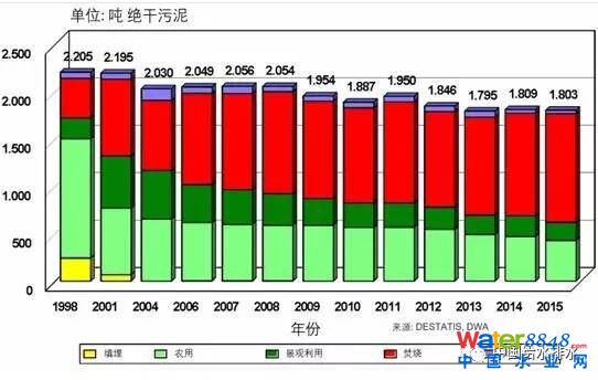 圖2顯示了德國(guó)在1998-2015年期間污水廠污泥的處置發(fā)展情況。