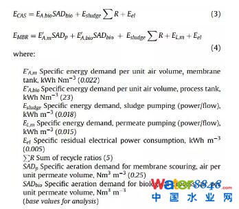 對(duì)于經(jīng)典活性污泥法和MBR工藝來(lái)說(shuō),SED主要貢獻(xiàn)因子是曝氣,除了用于給生物質(zhì)提供氧氣之外,對(duì)于MBR,還用于膜的沖洗。