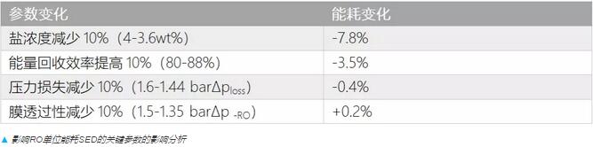 ▲ 影響RO單位能耗SED的關(guān)鍵參數(shù)的影響分析