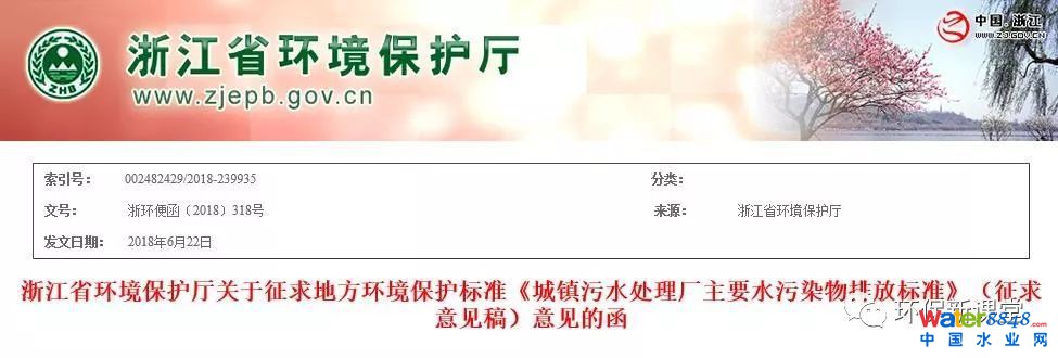 類IV標準!浙江發(fā)布《城鎮(zhèn)污水處理廠主要水污染物排放標準》(征求意見稿)!