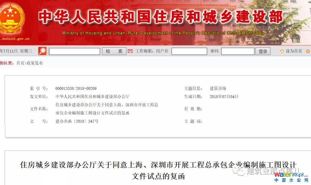 7月11日住建部發(fā)布《住房城鄉(xiāng)建設(shè)部辦公廳關(guān)于同意上海、深圳市開展工程總承包企業(yè)編制施工圖設(shè)計(jì)文件試點(diǎn)的復(fù)函》。同意在上海、深圳市開展工程總承包企業(yè)編制施工圖設(shè)計(jì)文件試點(diǎn)。試點(diǎn)期限為3年,自2018年8月1日起至2021年7月31日止。