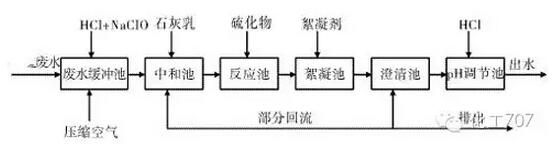 將重金屬廢水pH值調(diào)節(jié)為一定堿性后,再通過向重金屬廢水中投加硫化鈉或硫化鉀等硫化物,或者直接通入硫化氫氣體,使重金屬離子同硫離子反應(yīng)生成難溶的金屬硫化物沉淀,然后被過濾分離。由于金屬硫化物的溶度積比相應(yīng)的金屬氫氧化物的溶度積小得多,因此,硫化物沉淀法比氫氧化物沉淀法具有更多的優(yōu)點(diǎn),比如沉渣量少,容易脫水,沉渣金屬品位高,有利于金屬的回收?墒橇蚧锍恋矸ㄒ灿胁蛔阒,比方說硫化物結(jié)晶比較細(xì)小,難以沉降,因而應(yīng)用也不是很廣。