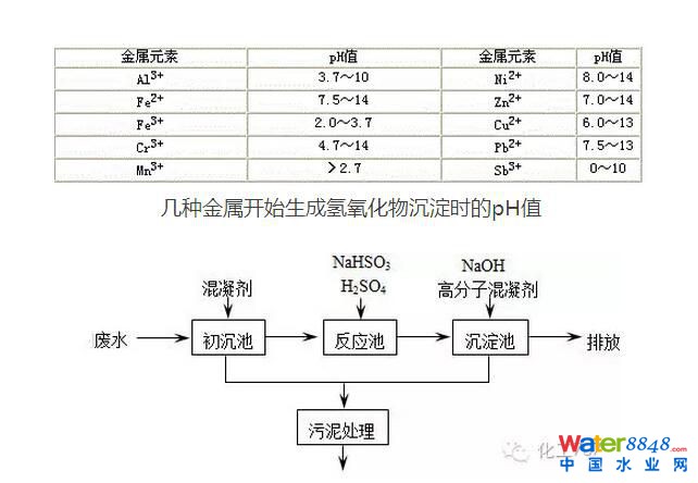 這種方法的原理是,用還原劑將重金屬廢水中的重金屬離子還原為金屬單質(zhì)或者價態(tài)較低的金屬離子,先將金屬過濾收集,然后再往處理液中加入石灰乳,使得還原態(tài)的重金屬離子以氫氧化物的形式沉淀收集。銅和汞等的回收可以利用這種方法,該法也常用于含鉻廢水的處理。較常使用的還原劑有硫酸亞鐵、亞硫酸氫鈉、鐵粉等。