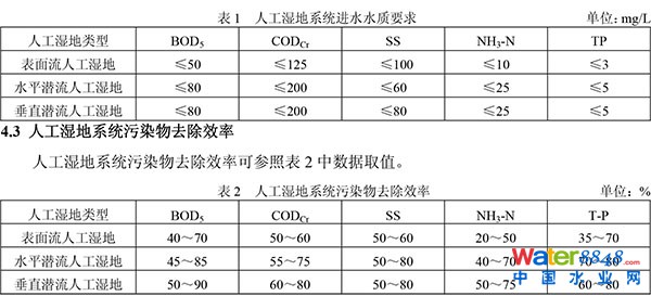 4.2.3人工濕地系統(tǒng)進水水質(zhì)應(yīng)滿足表1的規(guī)定。