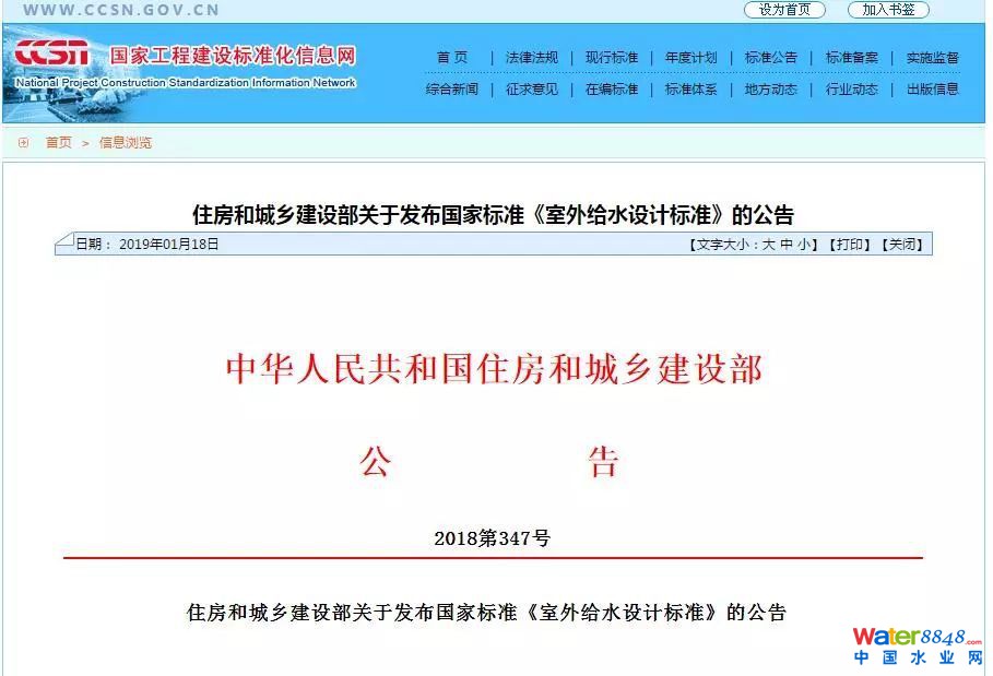 國家標(biāo)準《室外給水設(shè)計標(biāo)準》GB 50013-2018發(fā)布!