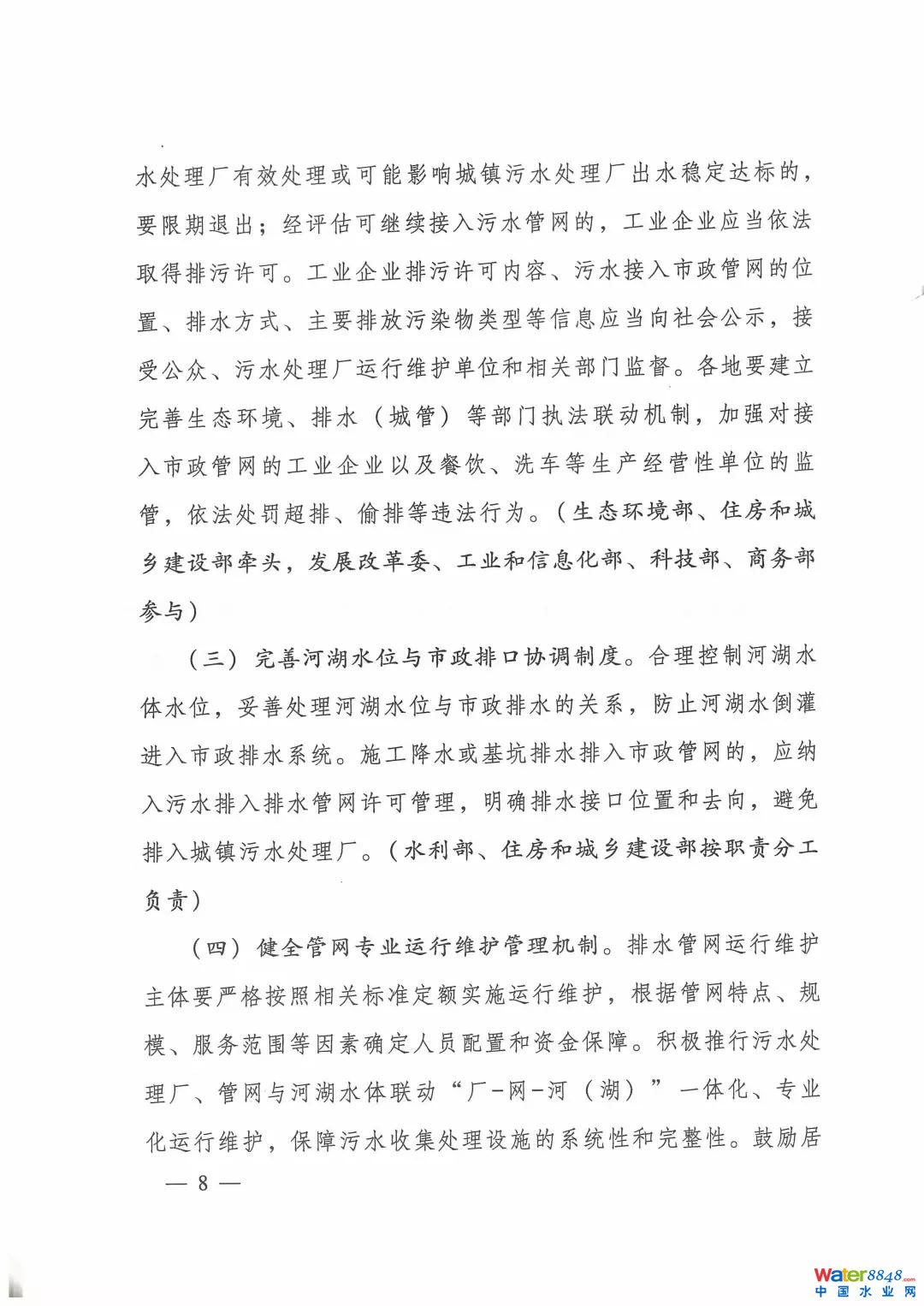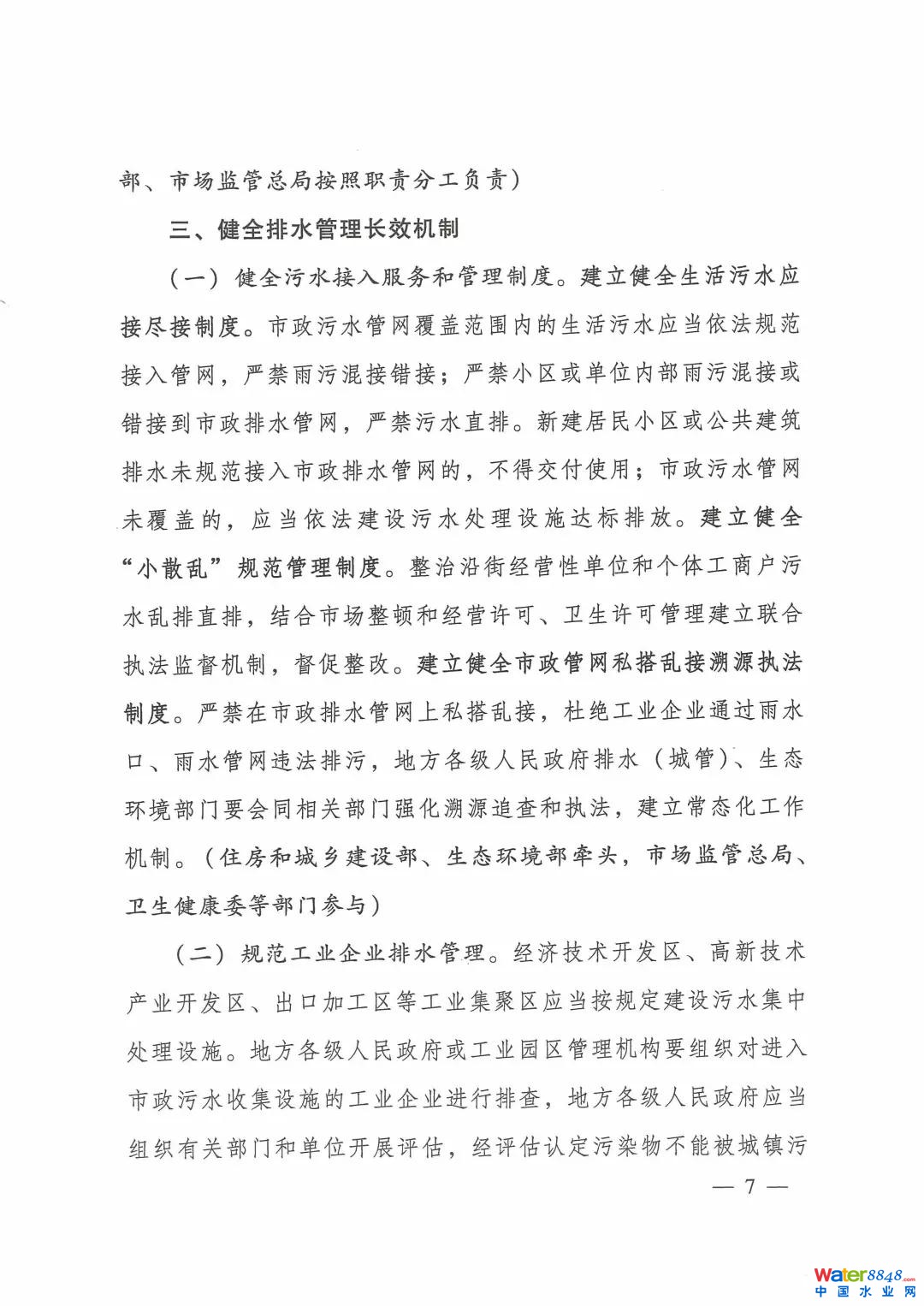 方案要求城市設(shè)要科學(xué)確定生活污水收集處理設(shè)施總體規(guī)模和布局,生活污水收集和處理能力要與服務(wù)片區(qū)人口、經(jīng)濟(jì)社會(huì)發(fā)展、水環(huán)境質(zhì)量改善要求相匹配。新區(qū)污水管網(wǎng)規(guī)劃建設(shè)應(yīng)當(dāng)與城市開(kāi)發(fā)同步推進(jìn),除干旱地區(qū)外均實(shí)行雨污分流。明確城中村、老舊城區(qū)、城鄉(xiāng)結(jié)合部污水管網(wǎng)建設(shè)路由、用地和處理設(shè)施建設(shè)規(guī)模,加快設(shè)施建設(shè),消除管網(wǎng)空白區(qū)。對(duì)人口密度過(guò)大的區(qū)域、城中村等,要嚴(yán)格控制人口和企事業(yè)單位入駐,避免因排水量激增導(dǎo)致現(xiàn)有污水收集處理設(shè)施超負(fù)荷。實(shí)施管網(wǎng)混錯(cuò)接改造、管網(wǎng)更新、破損修復(fù)改造等工程,實(shí)施清污分流,全面提升現(xiàn)有設(shè)施效能。城市污水處理廠進(jìn)水生化需氧量(BOD)濃度低于100mg/L的,要圍繞服務(wù)片區(qū)管網(wǎng)制定“一廠一策”系統(tǒng)化整治方案,明確整治目標(biāo)和措施。推進(jìn)污泥處理處置及污水再生利用設(shè)施建設(shè)。人口少、相對(duì)分散或市政管網(wǎng)未覆蓋的地區(qū),因地制宜建設(shè)分散污水處理設(shè)施。原文如下: