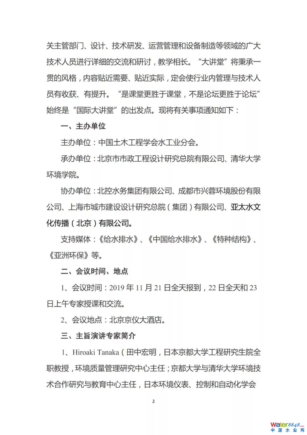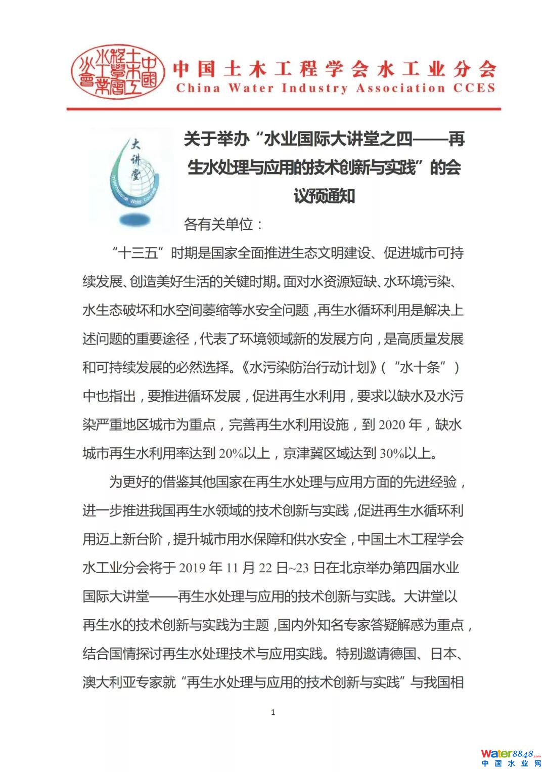 關(guān)于舉辦“水業(yè)國際大講堂之四——再生水處理與應(yīng)用的技術(shù)創(chuàng)新與實踐”的會議預(yù)通知