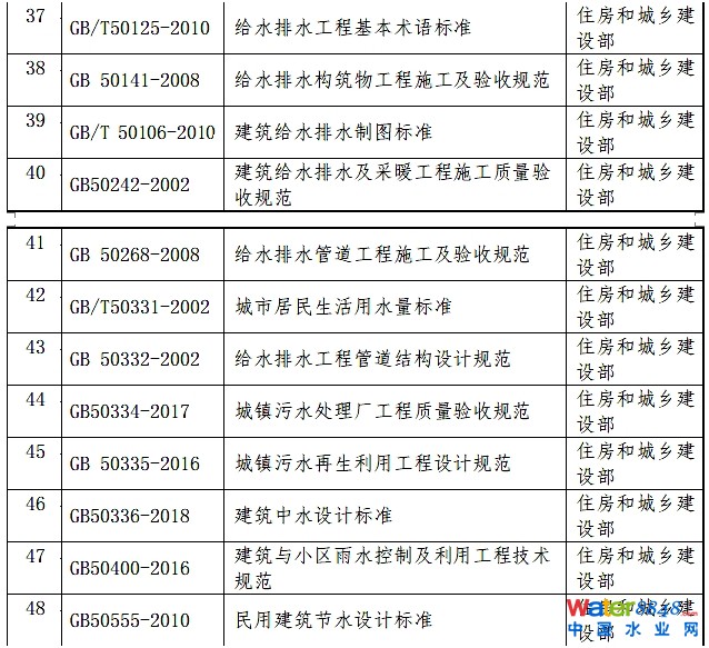現(xiàn)行給水排水行業(yè)標(biāo)準(zhǔn)名錄
