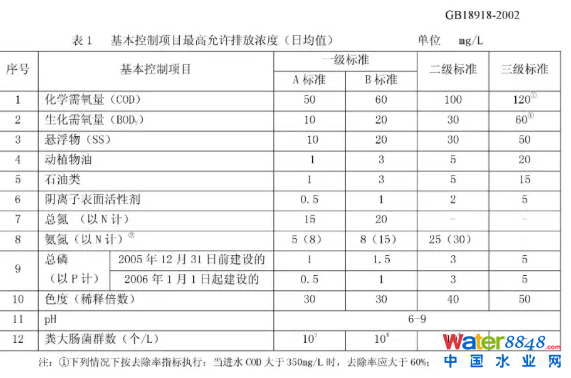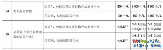 圖2 GB 8978-I996對(duì)糞大腸菌群數(shù)和總余氯的限值要求