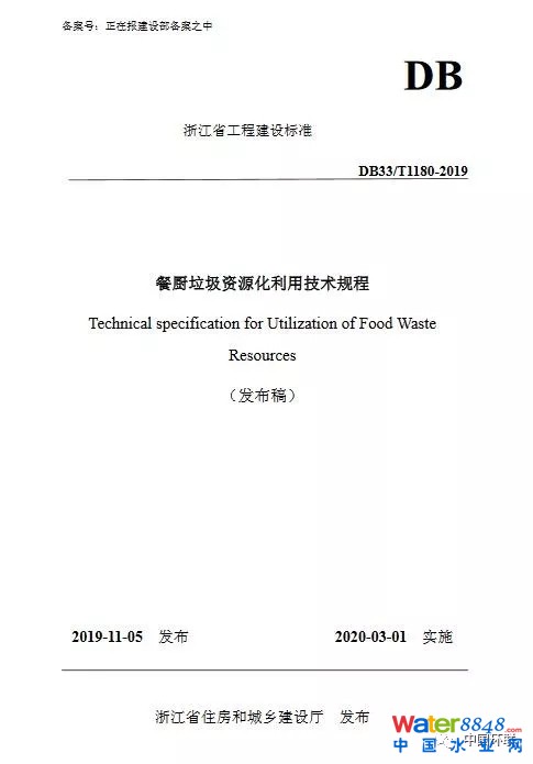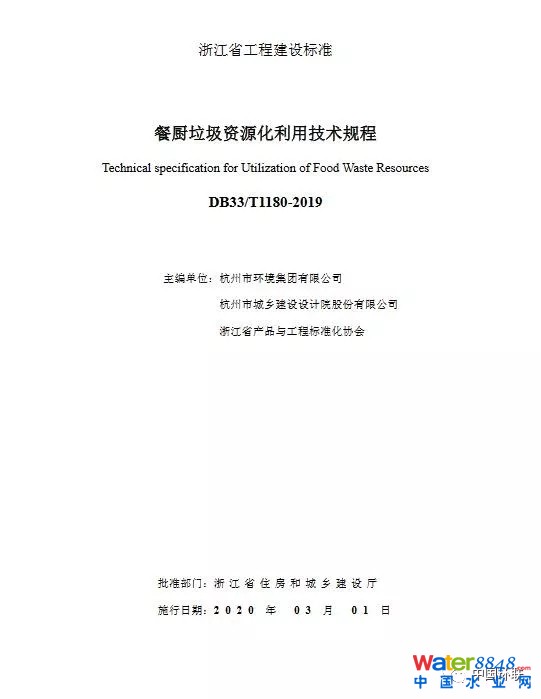 現(xiàn)批準(zhǔn)《餐廚垃圾資源化利用技術(shù)規(guī)程》為浙江省工程建設(shè)標(biāo)準(zhǔn),編號(hào)為DB33/T1180-2019, 自2020年3月1日起施行。