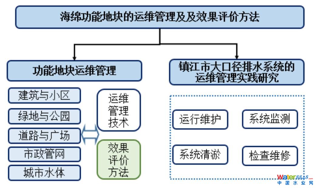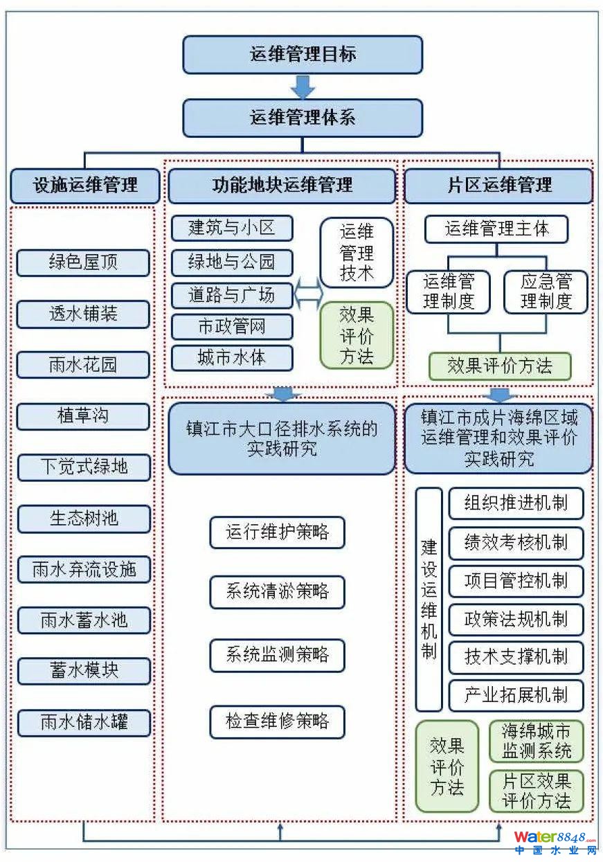 海綿片區(qū)的運(yùn)維管理研究在連片區(qū)域開展了運(yùn)維管理和效果評(píng)價(jià)方法的研究。同時(shí),在國家海綿試點(diǎn)城市鎮(zhèn)江進(jìn)行了實(shí)踐研究和效果評(píng)估。