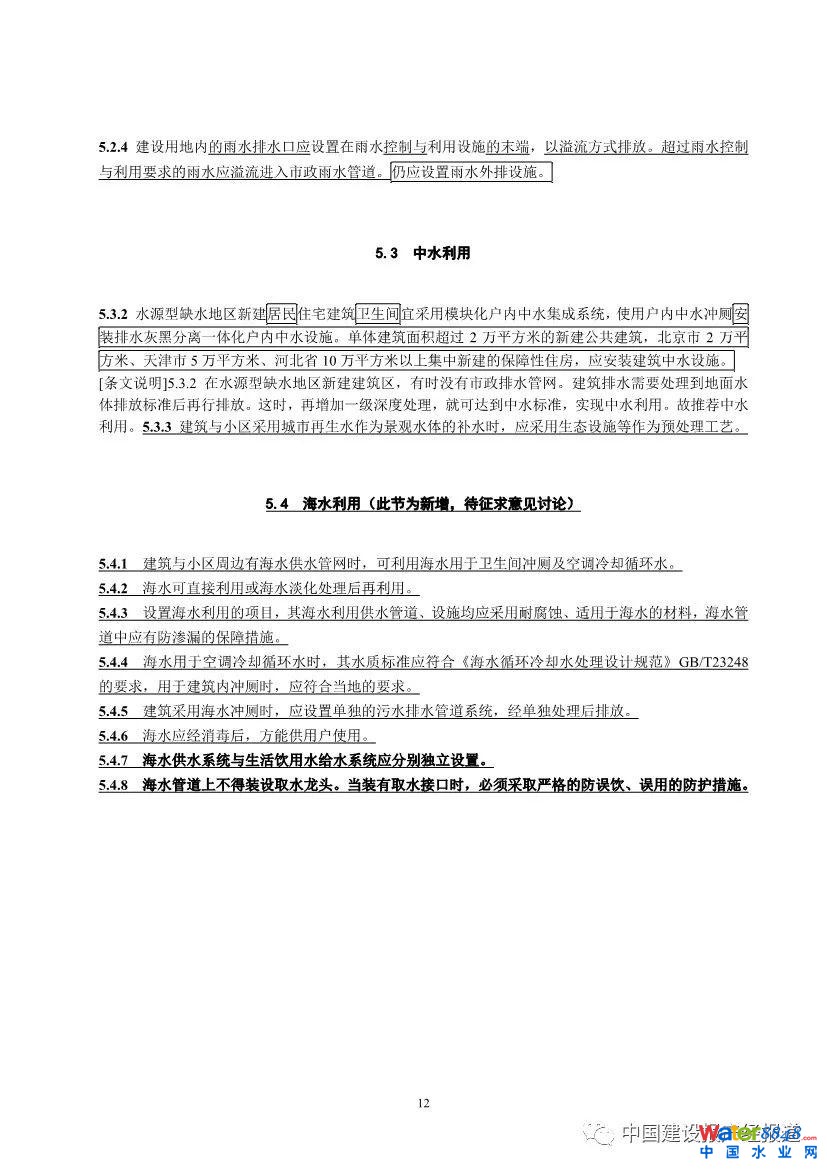 國標民用建筑節(jié)水設計標準局部修訂意見稿