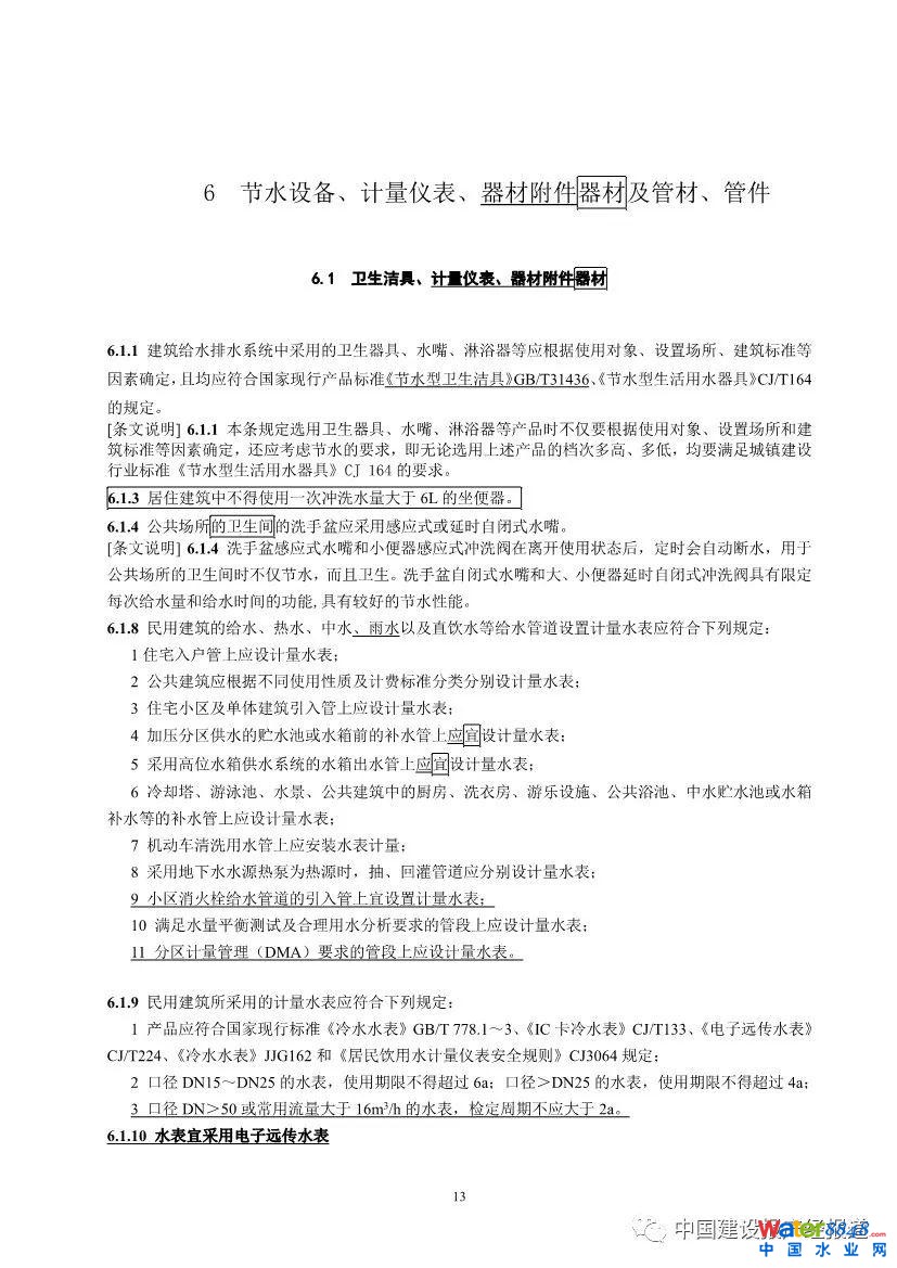 第6章:6.1衛(wèi)生潔具、計量儀表、器材、6.2節(jié)水設備、6.3管材、管件