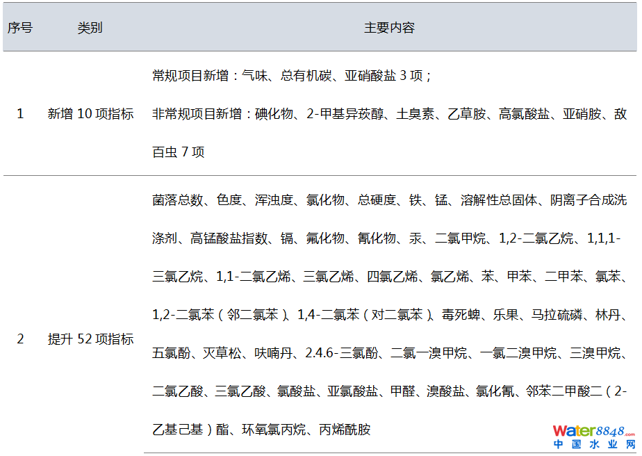 深圳市《生活飲用水水質(zhì)標(biāo)準(zhǔn)》與國家現(xiàn)行標(biāo)準(zhǔn)相比,增加了10項(xiàng)指標(biāo),提升了52項(xiàng)指標(biāo)(含消毒劑);附錄由原來的28項(xiàng)增加到45項(xiàng);考核方法上提升了出廠水和管網(wǎng)水合格率要求,增加了嗅味物質(zhì)和消毒副產(chǎn)物的檢測,重點(diǎn)關(guān)注龍頭水水質(zhì)。