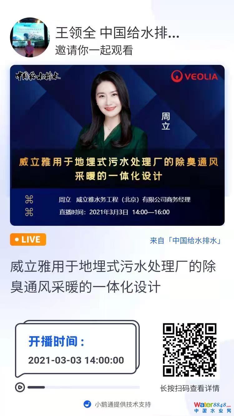 今天直播的題目為:威立雅用于地埋式污水處理廠的除臭通風采暖的一體化設計