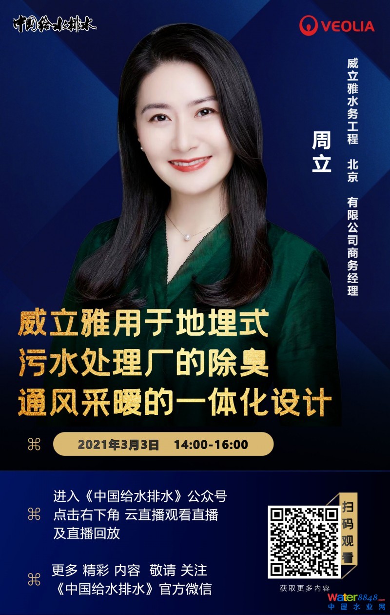 近年來,考慮到土地資源緊缺以及周邊環(huán)境污染的問題,我國投資建設了越來越多的地埋式污水處理廠,因涉及安全因素和越來越嚴苛的臭氣排放標準,地埋式污水廠的除臭通風也隨之成為工程設計的難點和關鍵點。威立雅可以提供怎樣的穩(wěn)定高效經(jīng)濟的解決方案呢?敬請關注威立雅水務技術中國商務經(jīng)理周立工程師于3月3日的在線直播。請掃描以下二維碼注冊。
