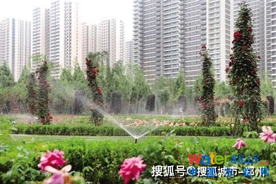金水環(huán)島公園位于中州大道與北三環(huán)西北角的蝴蝶形花壇,正在用再生水進行綠化噴灌