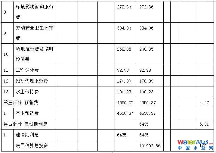 根據(jù)婺源縣發(fā)展和改革委員會(huì)批復(fù)通過的可行性研究報(bào)告,本項(xiàng)目總投資101992.86萬元。其中:建筑安裝工程費(fèi)用84157.95萬元,工程建設(shè)其他費(fèi)用6849.54萬元,預(yù)備費(fèi)4550.37萬元,建設(shè)期利息為6435萬元。