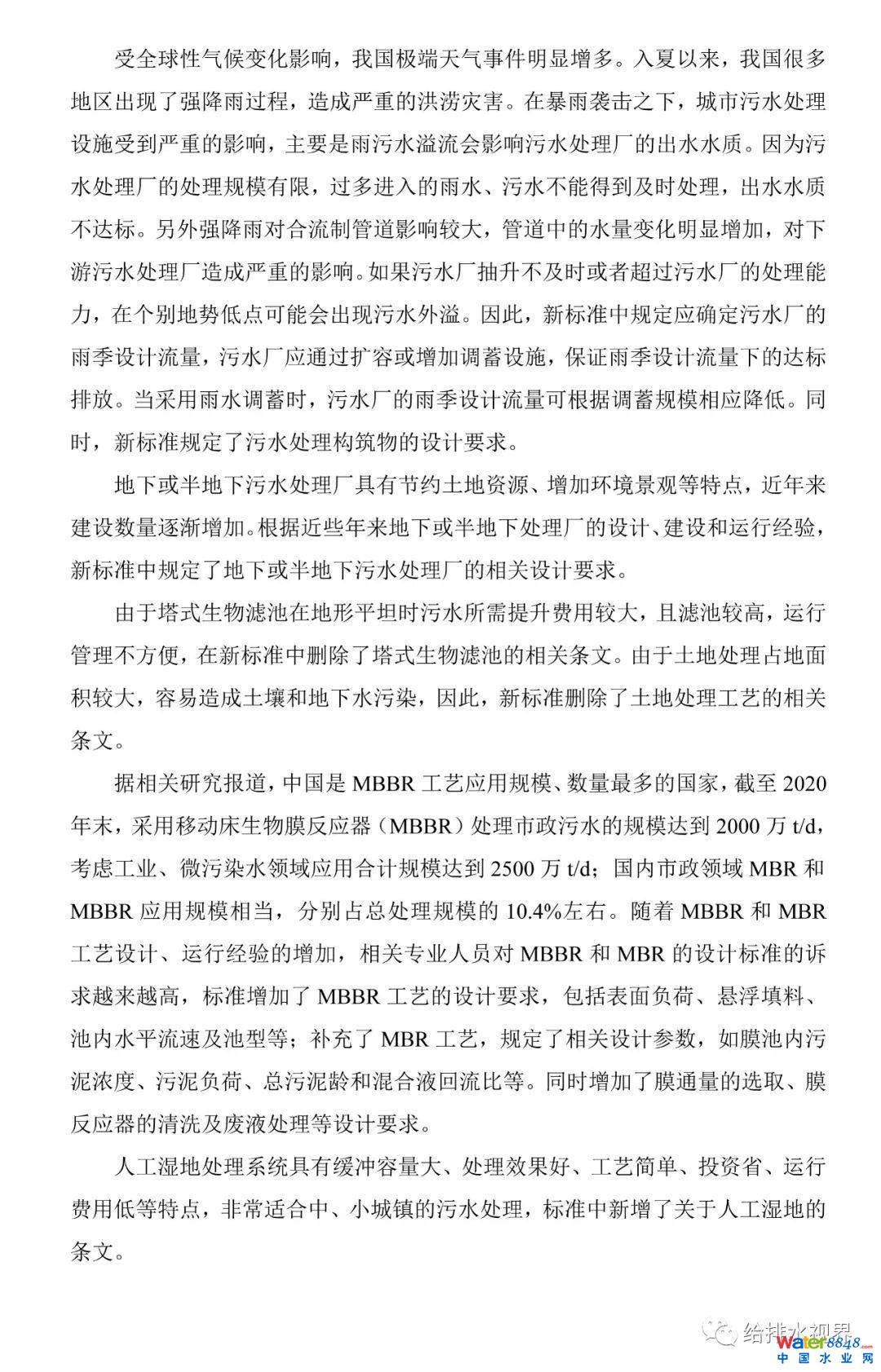 - 刪除了塔式生物濾池和土地處理等工藝,補(bǔ)充了膜生物反應(yīng)器(MBR)、移動(dòng)床生物膜反應(yīng)器(MBBR)和人工濕地等應(yīng)用廣泛且運(yùn)行可靠的工藝;