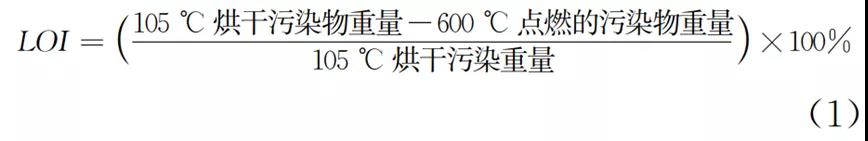 從膜上收集污物,干燥、稱重、點(diǎn)燃并重新稱重。定義計(jì)算如式(1)所示: