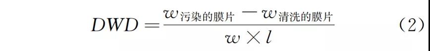 膜元件上切下的膜片分成兩部分,一半不經(jīng)處理作為對(duì)照,另一半用去離子水沖洗水,烘干后冷卻稱重,并測(cè)量膜片的寬度和長(zhǎng)度。DWD計(jì)算如式(2)所示: