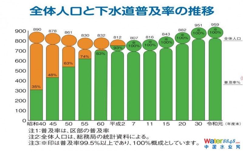 圖-1 東京主城區(qū)人口變化和排水普及率