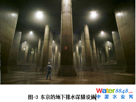 東京是開展深層排水隧道建設較早的城市之一,目前已建成四條深隧系統(tǒng),基本都以控制內(nèi)澇為目的。其中有壯觀的號稱地下神殿的“東京首都圈外郭防水路”,直徑10.6米,全長6.3公里,耗資20億美元歷時14年于2006年建成使用。但到目前東京還沒有徹底解決城市內(nèi)澇問題,“2021經(jīng)營規(guī)劃”中把解決城市內(nèi)澇排在主要對策的第二位。