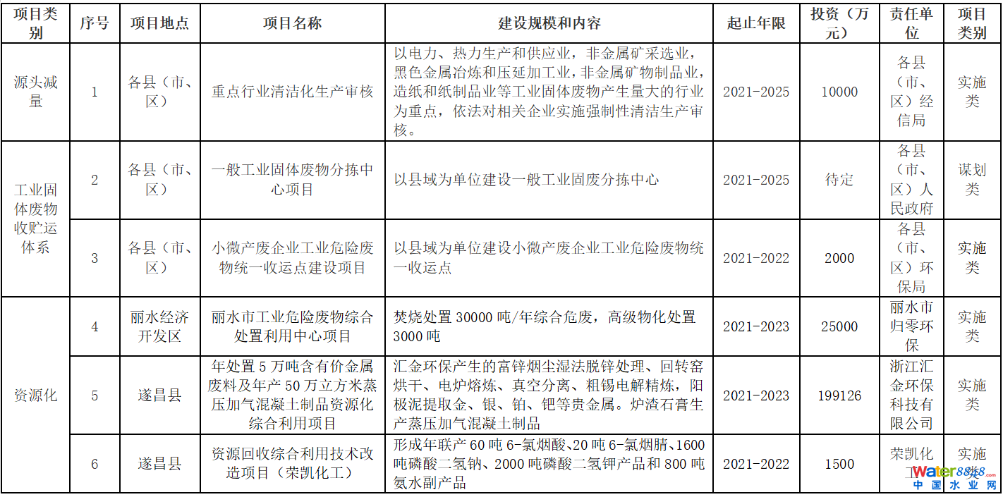 各重點(diǎn)工程建設(shè)內(nèi)容見(jiàn)附表1麗水市“十四五”工業(yè)固廢污染防治重點(diǎn)工程表。
