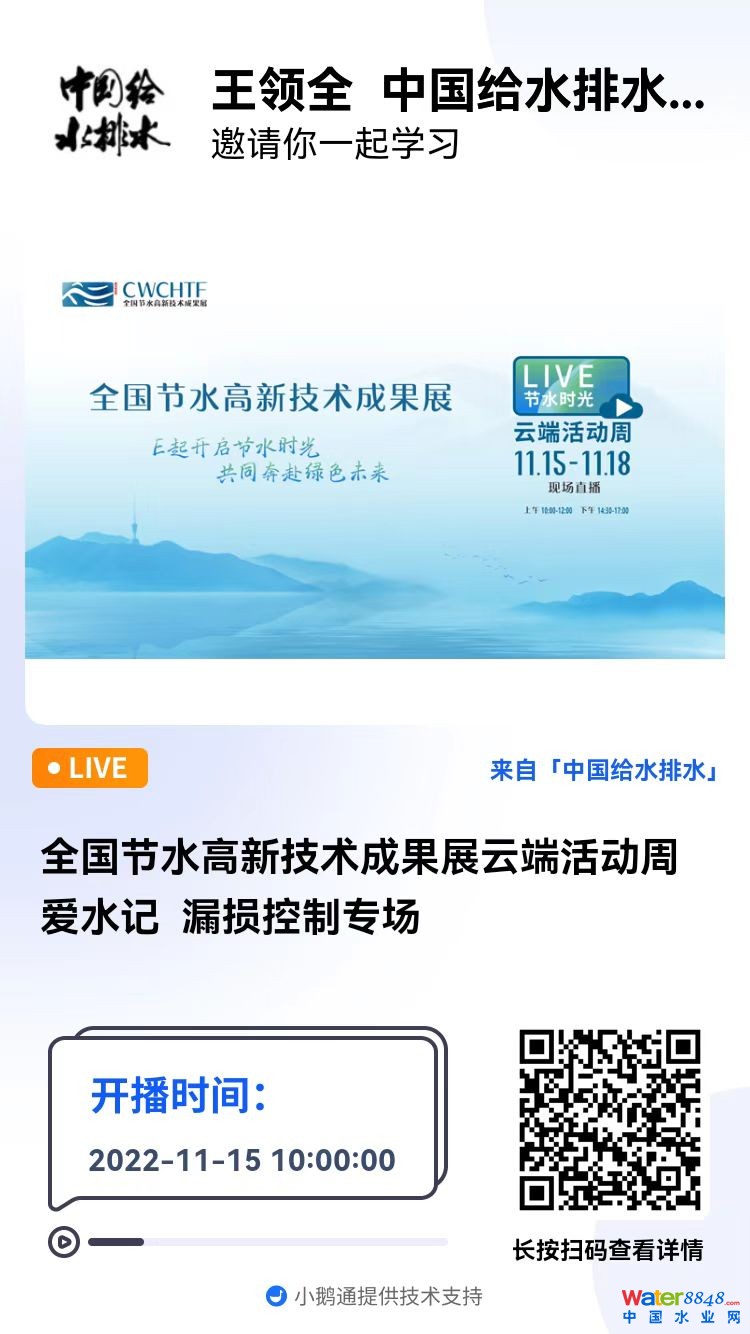 首屆全國節(jié)水高新技術(shù)成果展即將開幕,同步舉行的節(jié)水時光云端活動周”也將于2022年11月15日10:00-12:00