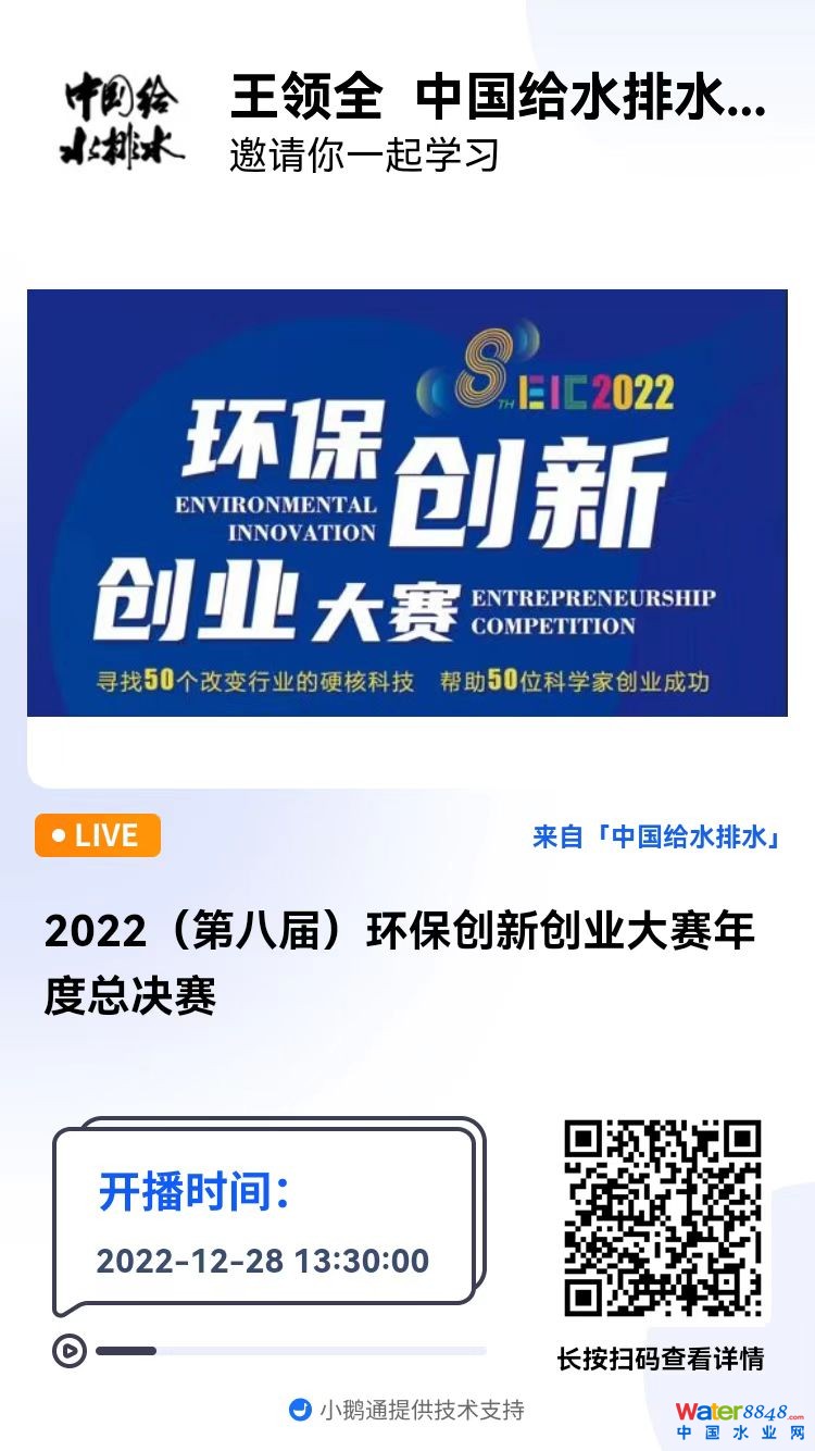 2022(第八屆)環(huán)保創(chuàng)新創(chuàng)業(yè)大賽年度總決賽 直播時間:2022年12月28日 13:30—17:30